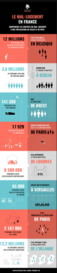 En infographie, la Fondation Abbé Pierre présente les chiffres du mal-logement en France.